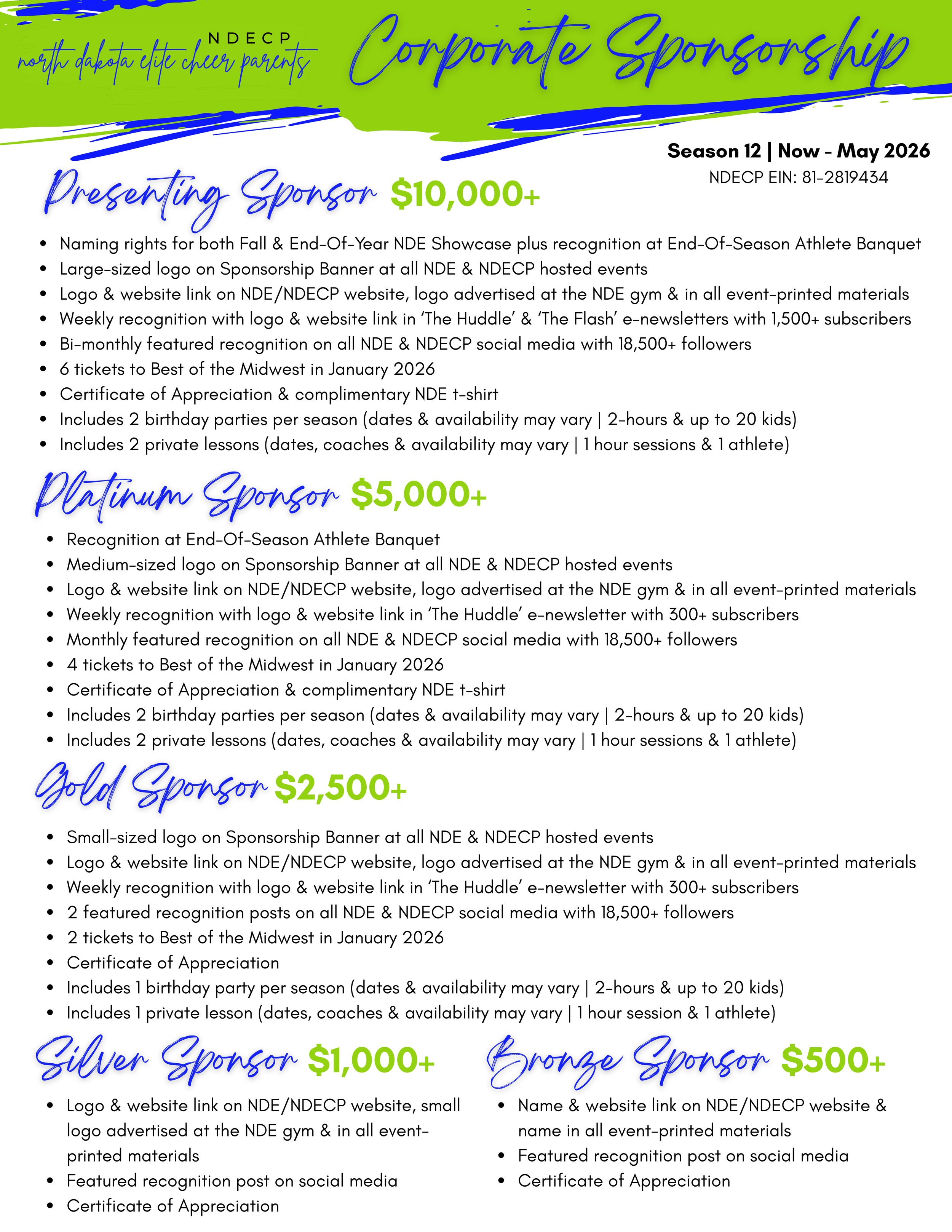 Your sponsorship makes cheer more accessible for passionate athletes.